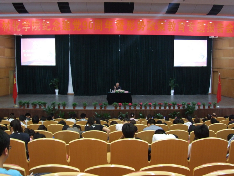 5月18日下午,为隆重纪念建党90周年,深入推进创先争优活动,社团学姐 在钧儒厅隆重举行纪念建党90周年暨形势政策教育主题报告会,校党委宣传教育讲师团成员曹力铁教授应邀为学院师生作了一场题为“波澜壮阔九十年,中共党史纵横谈”的精彩报告,学院理论中心组成员和全体师生聆听了报告。