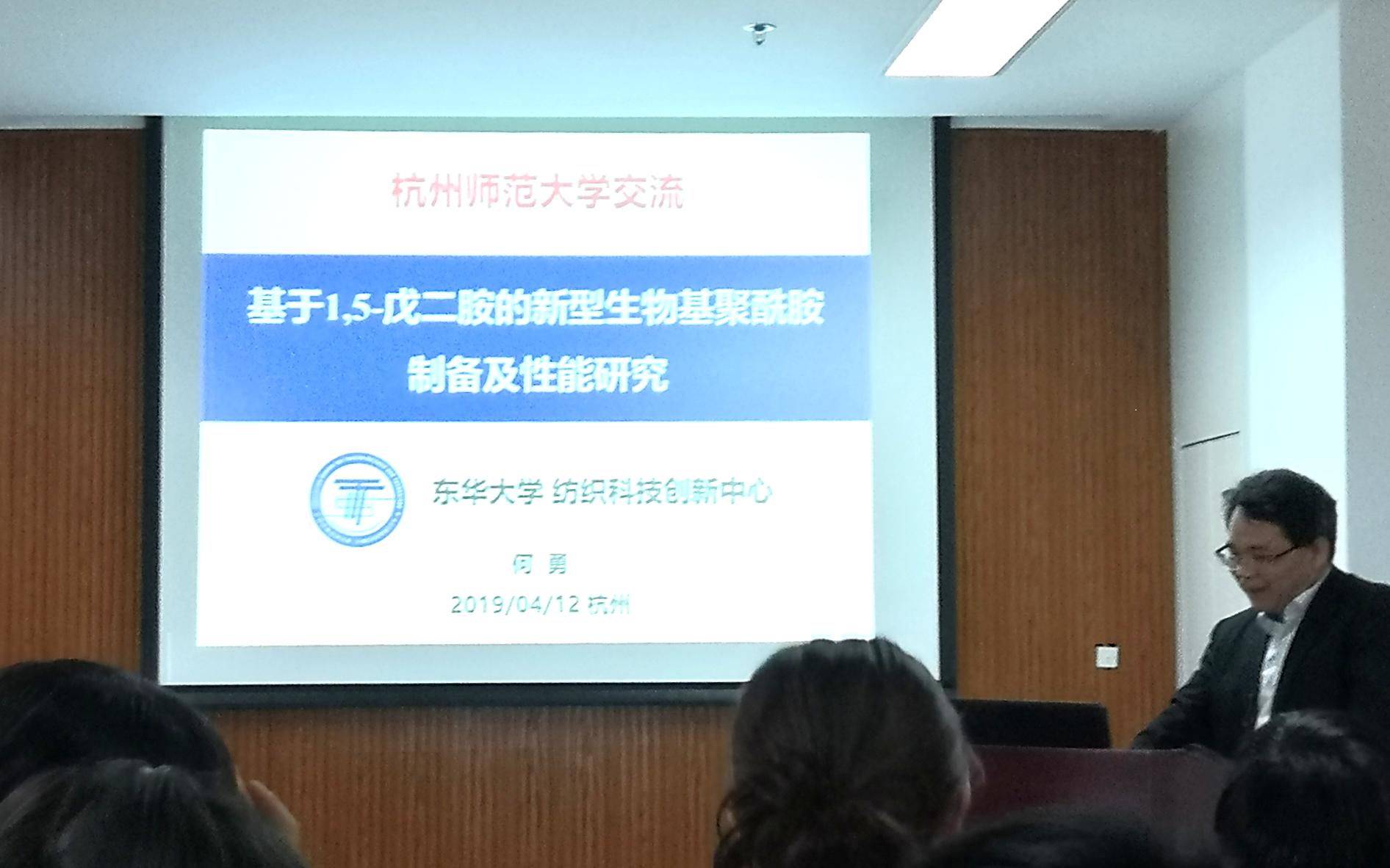 2019年4月12日上午10:00,井上俊英博士和东华大学何勇教授应社团学姐 李勇进教授的热情邀请,分别为材化师生做了题为“looking back on my research and development of liquid crystal polyesters ”和 “基于1,5-戊二胺的新型生物基聚酰胺及其性能研究”的学术报告。
