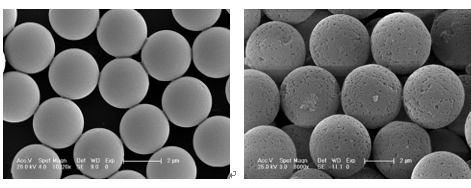 尺寸可控的均一粒径多孔聚合物微球广泛应用于色谱柱填料,离子交换树脂,生物分离,催化剂载体等领域。虽然高分子微球的合成方法众多,然而粒径单分散、共聚、交联、多孔的聚合物微球合成则较为困难。我们经过十多年的技术沉淀,发展了一种改进的种子溶胀聚合技术,能够较为成熟稳定地合成微米级均一粒径聚苯乙烯多孔微球(包括具有一定官能团的微球),并深入地探索了多孔微球材料在烯烃催化剂负载催化和药物缓释两方面的应用,其中作为载体负载齐格勒-纳塔催化剂的应用得到中石油的关注与认可,并在中石油大庆化工研究中心进行了放大。