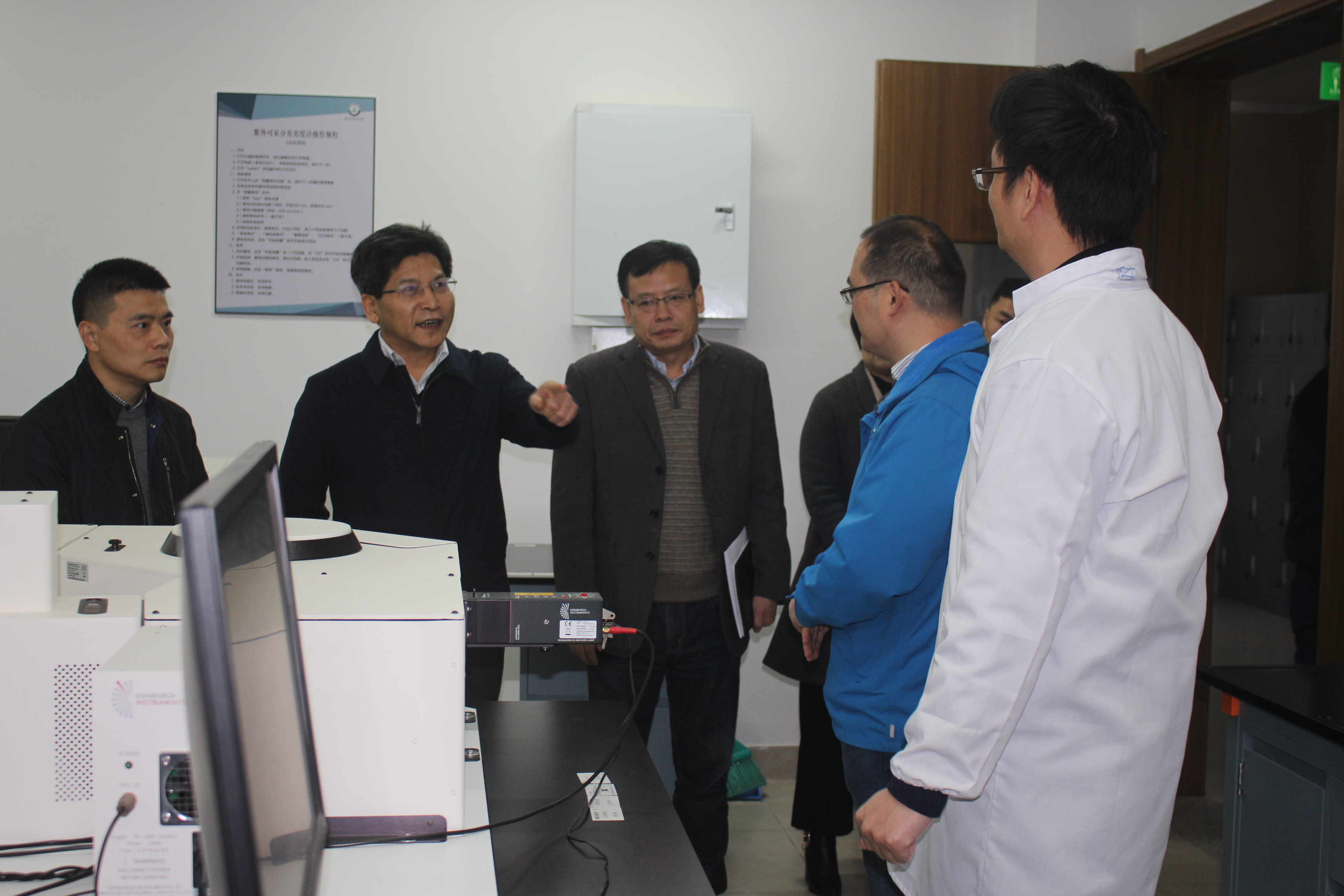 陈春雷一行来到陈列室,参观了学院办学情况、历届毕业生留影、优秀校友风采等栏目,对学院教学科研工作开展情况进行了了解,实地走访了大型仪器共享平台、分析测试中心及实验室等教学科研场地,并召开座谈会,听取了学院关于主题教育工作开展情况的汇报。