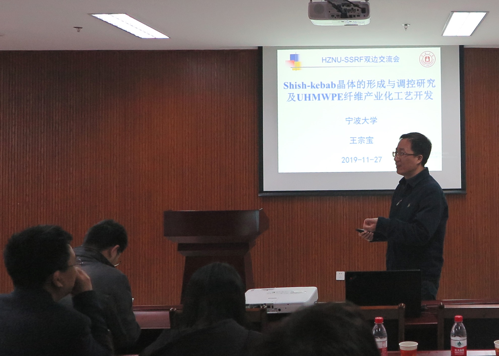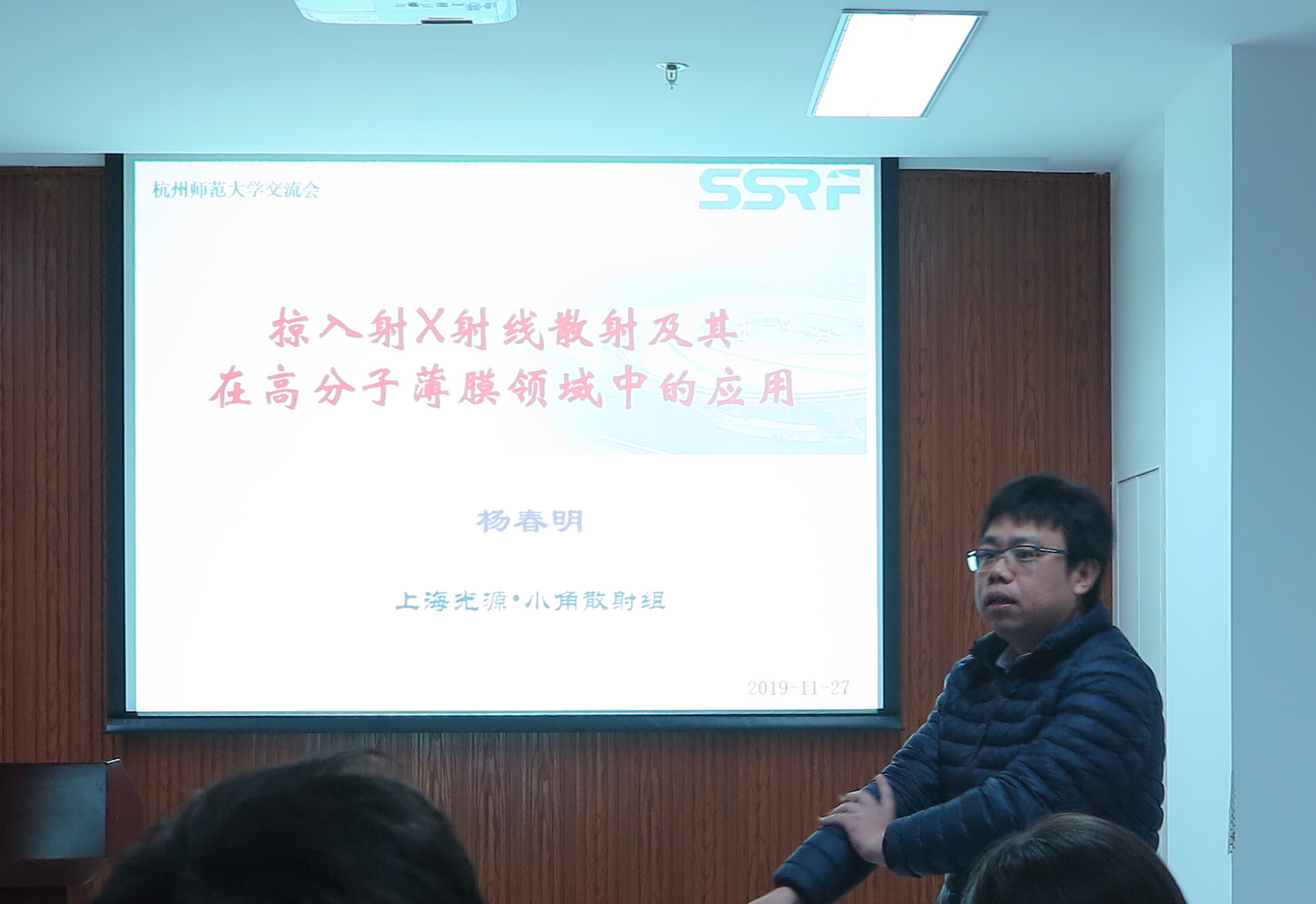 2019年11月27日上午8:45分,HZNU-SSRF双边交流会在社团学姐 勤园17号楼208成功召开,其中杨春明研究员、徐君庭教授、林金友研究员、王宗宝教授、李秀宏研究员和由吉春教授等人在会议上为材化师生做了学术报告。