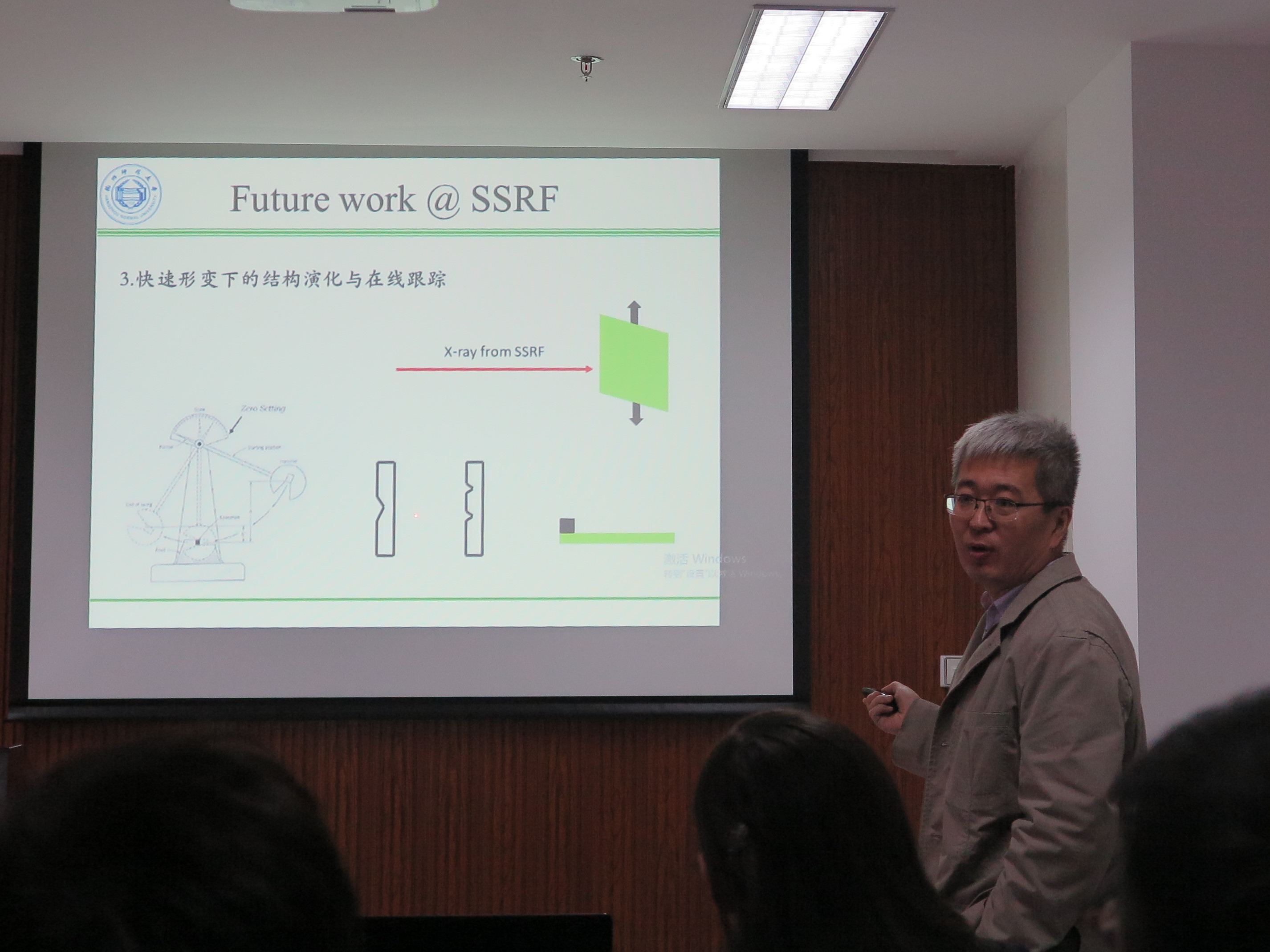 李秀宏研究员,上海光源,中国科学院高等研究院研究员,全国材料新技术研究会理事,长期从事同步辐射技术在材料领域中的应用,高分子材料加工过程中结构演变的原位X射线散射,软物质自组装过程等方面的研究,并取得优异的成果。报告在师生们热烈的掌声中拉开了帷幕,本次报告中李秀宏研究员为我们介绍了时间分辨USAXS线站(BL10U1),USAXS线站科学目标,USAXS光束线和实验站主要进展以及USAXS线站典型科学应用。在座师生认真听取了报告,并同李秀宏研究员深入的交流和讨论。