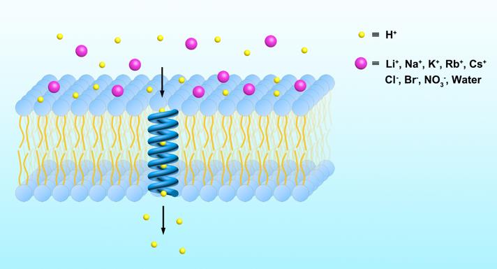 人工质子跨膜通道的示意图