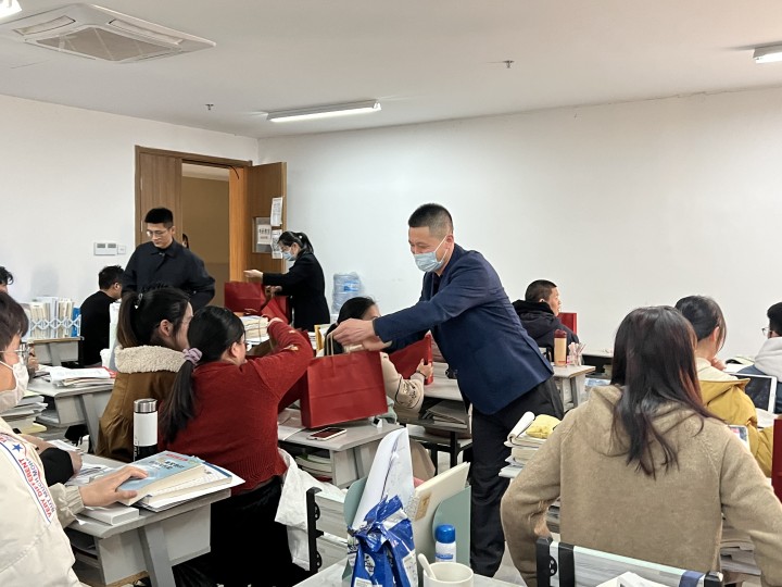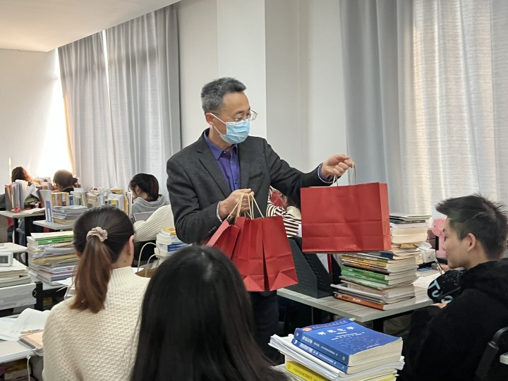 12月15日下午,社团学姐 副院长李志芳、党委副书记管庆江、学工办全体辅导员到仓前校区勤园考研自习室走访慰问考研学生,为考研学子送祝福,添动力。
