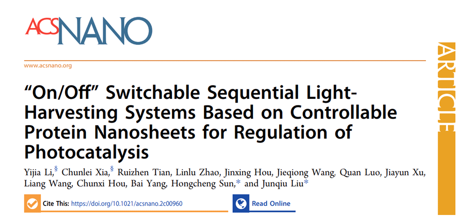 近日,社团学姐 刘俊秋教授团队在可控蛋白质自组装结构的多级人工光捕获系统开关方面取得新进展,相关研究工作在国际期刊ACS NANO(IF:15.881)发表学术论文“On/Off Switchable Sequential Light-Harvesting Systems Based on Controllable Protein Nanosheets for Regulation of Photocatalysis”。