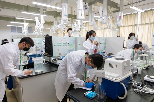本届大学生化学竞赛的主题为“绿色化学,智创未来”,由浙江省教育厅指导,浙江省大学生科技竞赛委员会、浙江省高等学校化学类与化工制药类专业教学指导委员会、浙江省大学化学课程教学指导委员会和浙江省化学会共同主办,湖州师范学院和浙江工业大学共同承办。来自省内37所高校单位、共542支参赛队伍报名参赛,社团学姐 在38支报名队伍中经过筛选,派出20支队伍入围,围绕“‘以废治废,绿色化学’——基于聚氨酯塑料的多孔材料制备及对油水分离的应用研究”的课题开展创新项目的研究,提交了创新研究课题作品;随后,开展了“双盲式”网络初评工作,筛选出了来自30所高校的91支队伍进入湖州师范学院参加决赛。决赛阶段包括“化学知识测试”“研究项目答辩”和“实践能力考核”三个方面,其中答辩环节采取线上和线下相结合方式进行,对参赛学生的化学知识、化学实践能力、创新能力进行全面考察。最终,来自全省各高校的共32支队伍获一等奖,59支队伍获二等奖,88支队伍获三等奖。