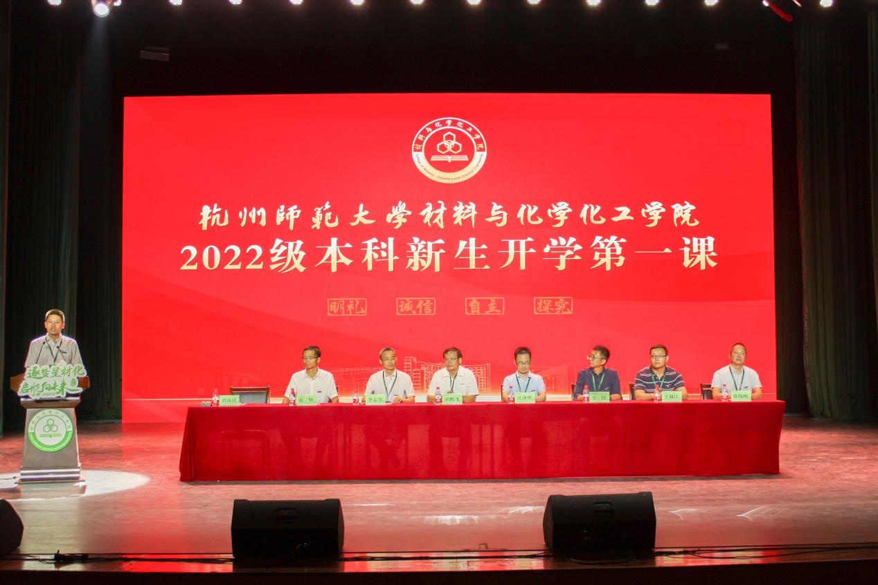 2022年9月1日18:00,社团学姐 于下沙校区艺术中心1200座以线上线下相结合的方式隆重举行2022级本科新生开学第一课。学院院长章鹏飞,党委书记江齐里,副院长李志芳,党委副书记兼纪委书记管庆江,院长助理、化学系主任王民,化工系主任张坚,高分子系副主任于双江,教授代表徐伟明,2022级全体新生班主任、全体辅导员和已到校的近400名2022级本科新生现场参加本次活动。学生家长、2022级第二学位学生和个别因疫情等原因尚未报到的新生在云端观看直播。开学第一课由管庆江主持。