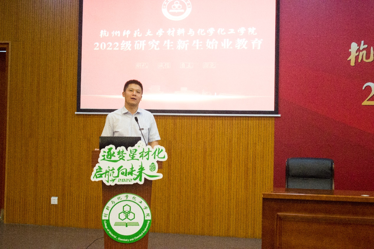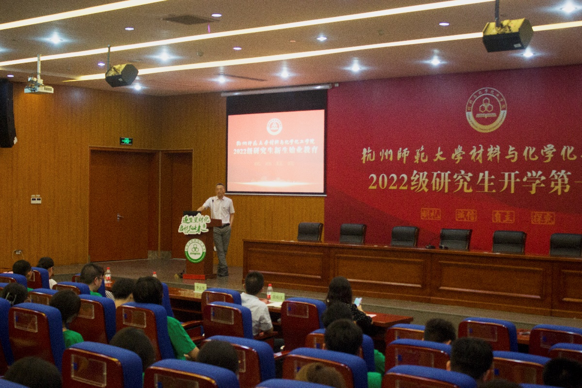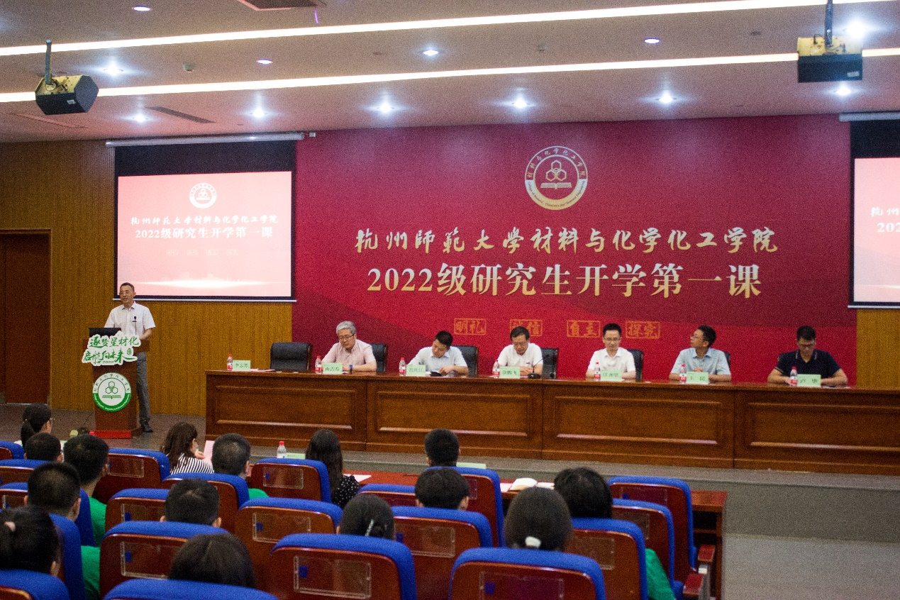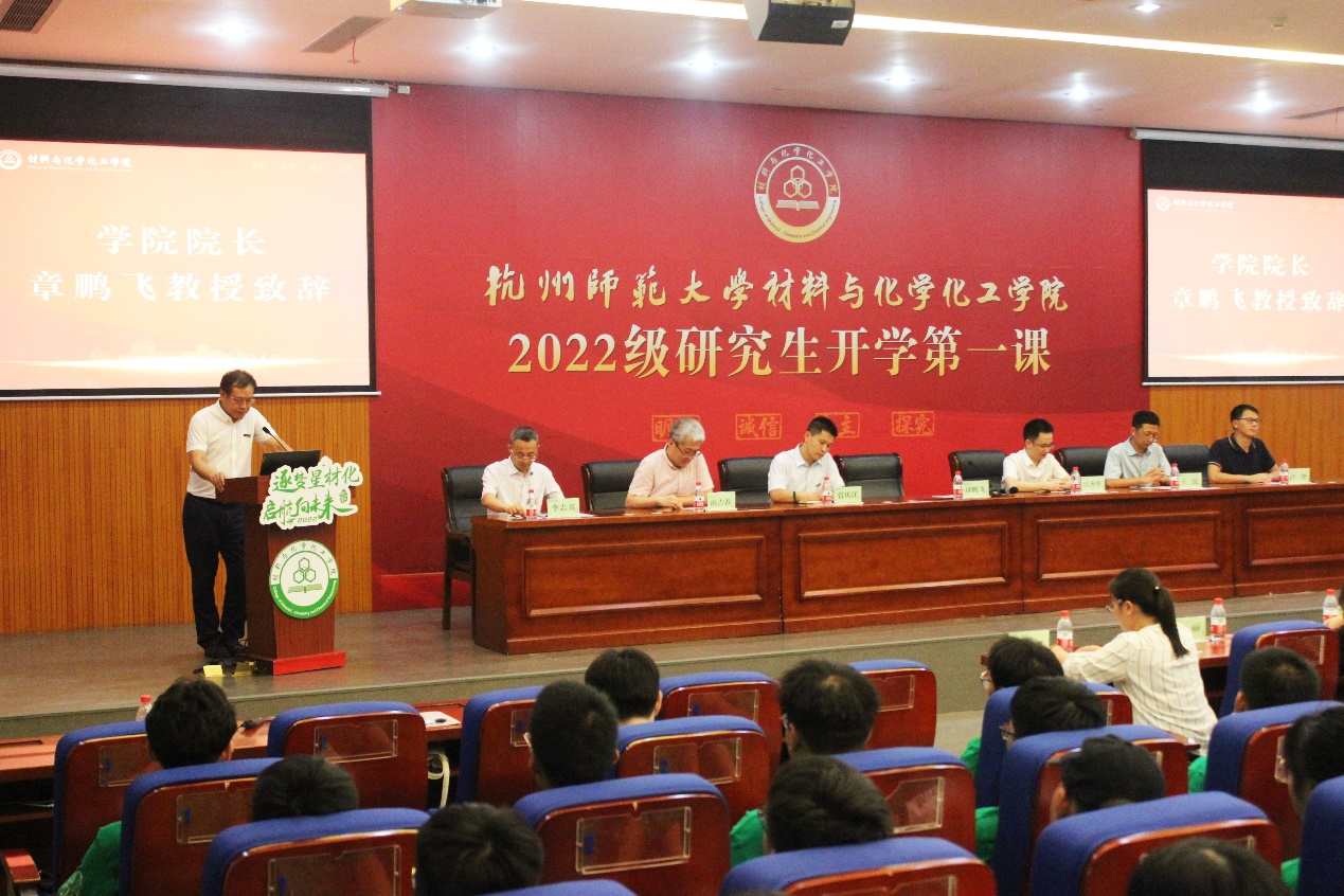 9月2日18:00,学院于学术交流中心A118报告厅举行2022级研究生新生开学第一课暨始业教育大会。学院院长章鹏飞,党委书记江齐里,副院长李志芳,党委副书记兼纪委书记管庆江,院长助理、化学系主任王民,学硕班班主任、教授代表由吉春,专硕班班主任、教授代表卢华,团委书记兼学工办主任张楚黛,团委副书记韩秉峻,辅导员孙丰娜,教学秘书苏丽等参加,共同欢迎学院213名新生的到来。