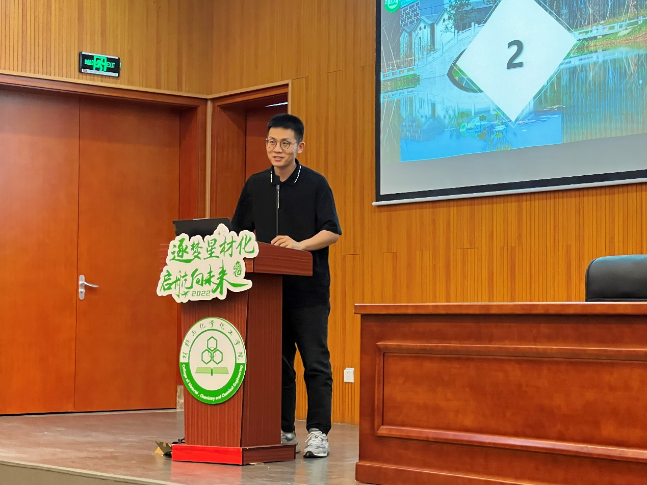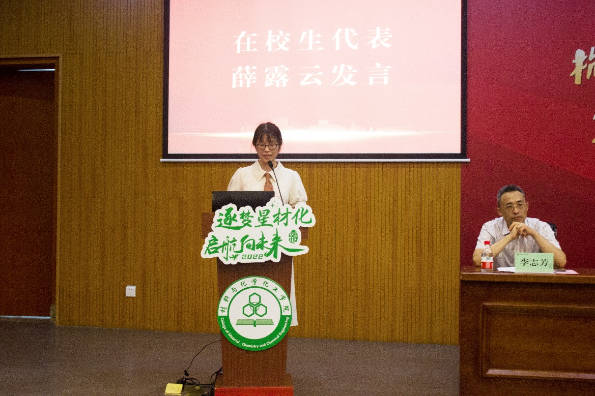 在校生代表、研会主席团执行主席薛露云结合自己的经历和感悟向新生们描绘了丰富多彩的研究生生活,并希望新生们可以秉承着谦逊、好问的态度,在科研的道路上坚持拼搏,绽放自己的光芒。