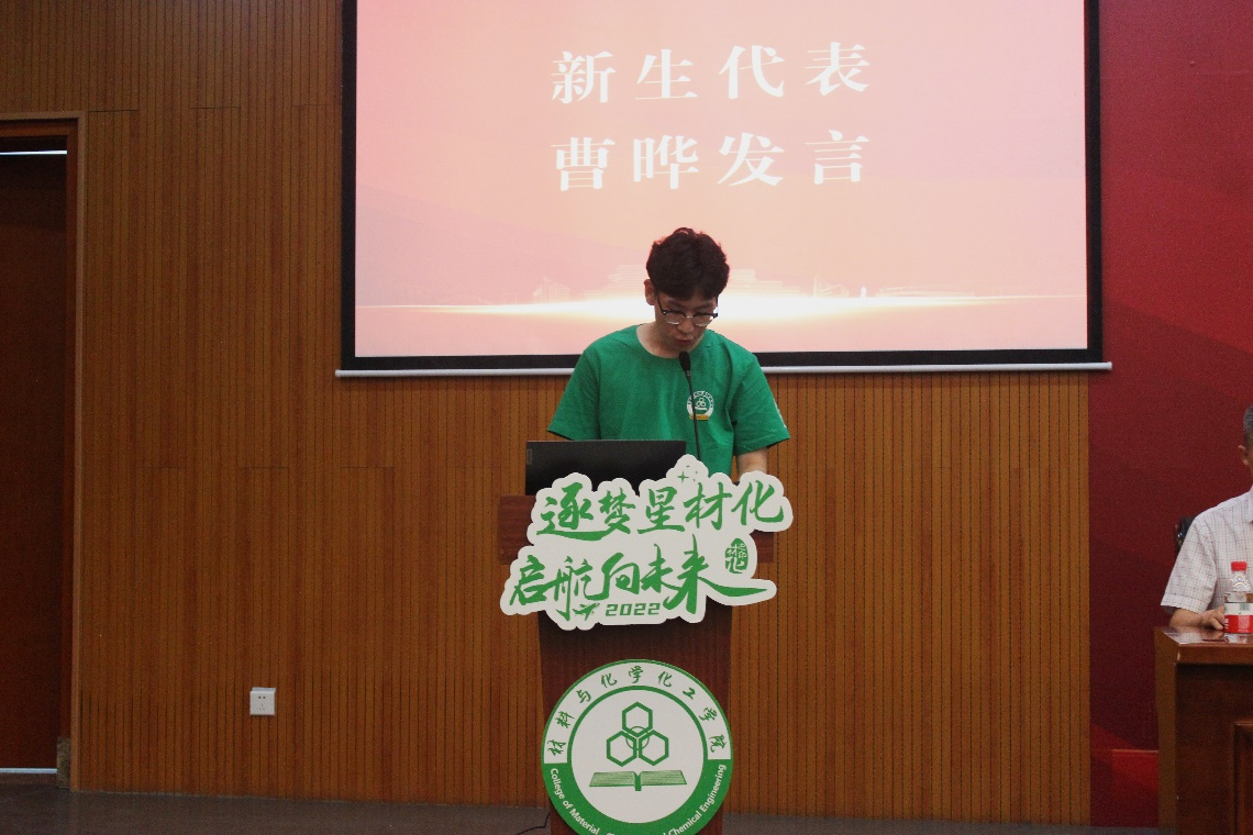 新生代表曹晔在发言中表达了自己对学院的热爱和对未来研究生生活的憧憬。他带领大家思考了从本科生到研究生身份转换后的区别,并立志与同学们在成长中做最好的自己。