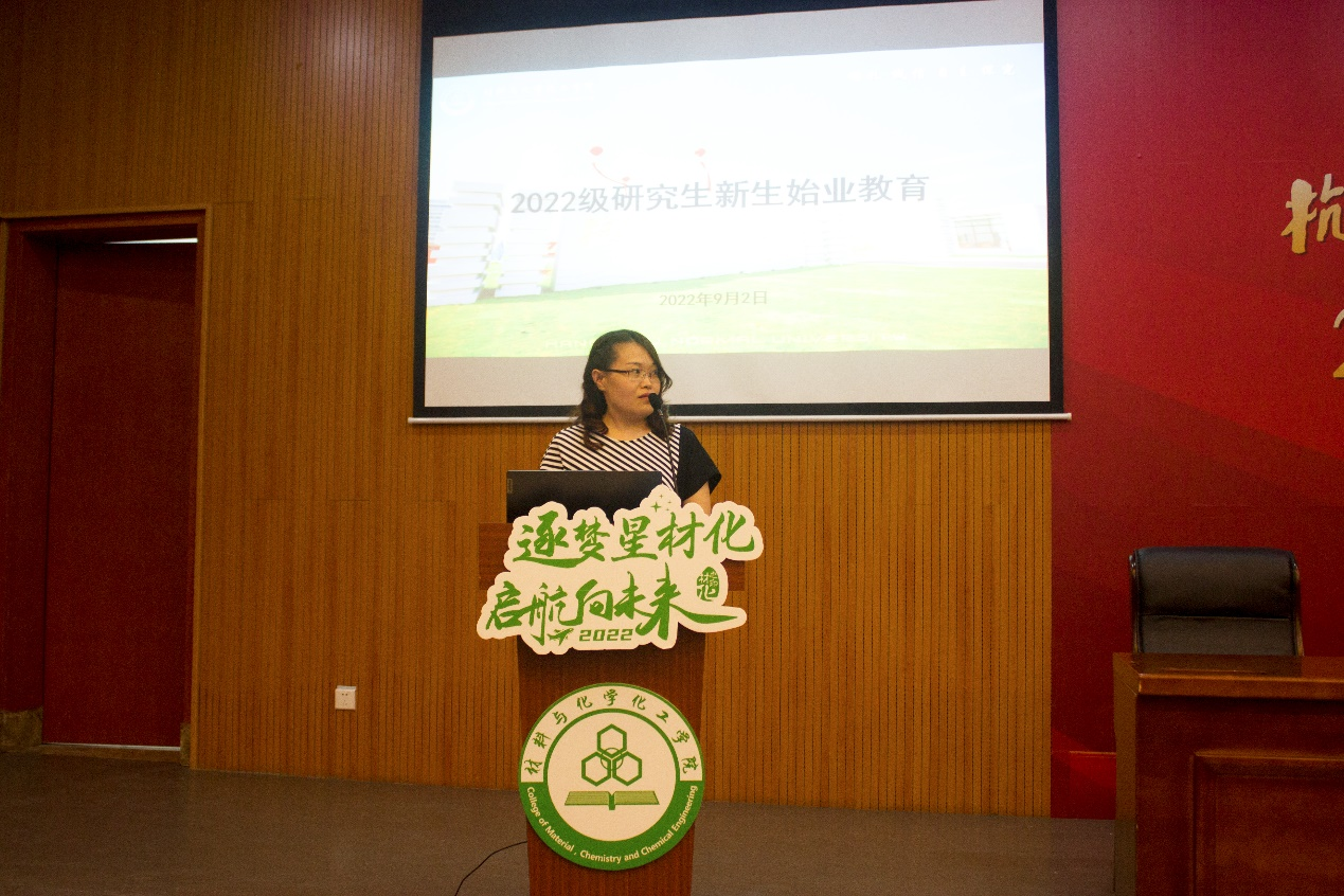 辅导员孙丰娜和教学秘书苏丽向研究生新生们介绍了学院研究生日常管理相关制度,详细讲述了培养方案、学习计划、奖助体系、人身财产安全和疫情防控等问题。