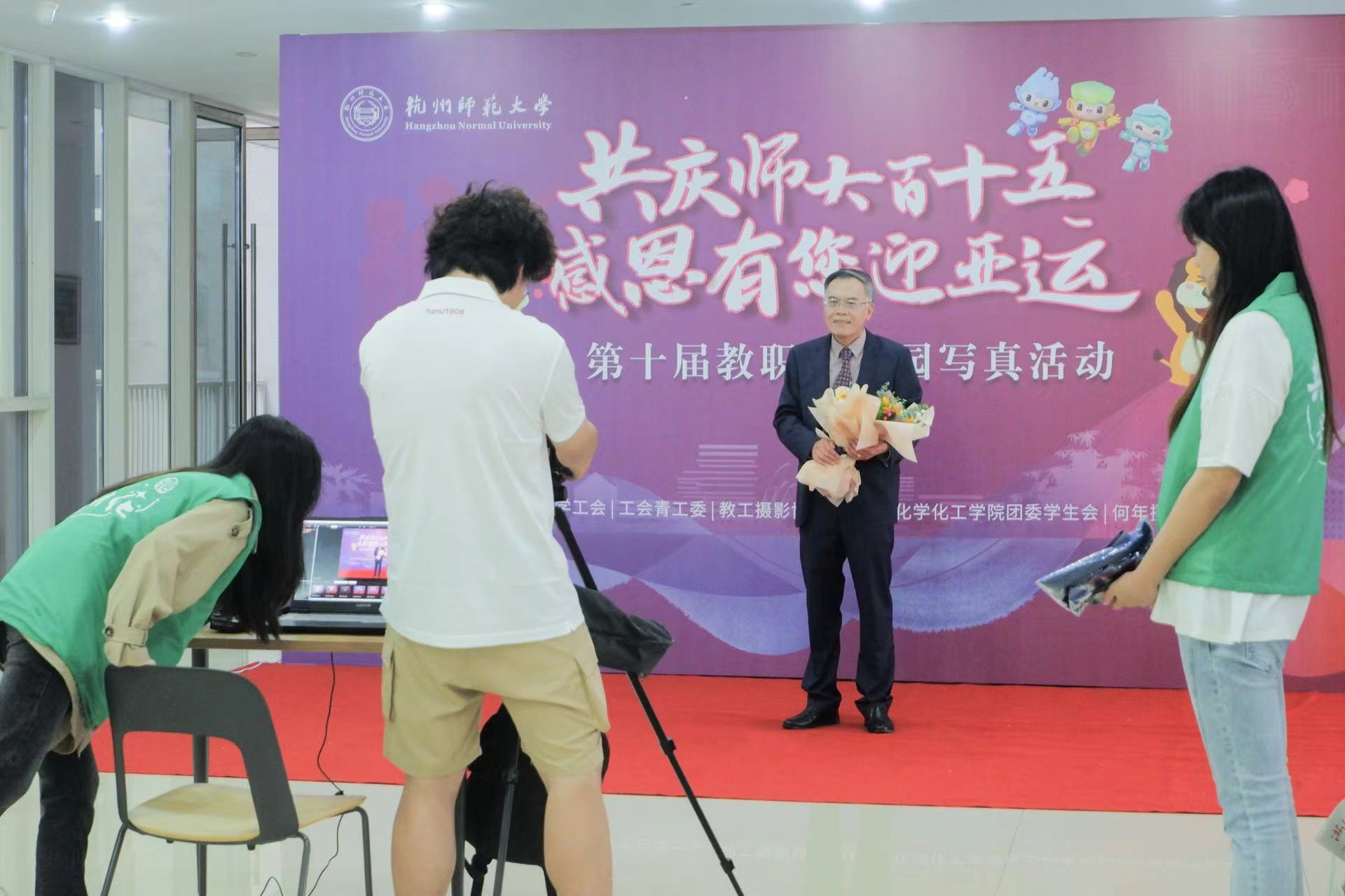 5月6日,为了献礼学校115周年校庆,共迎第19届亚运会,学校工会面向2023年度荣休教师举办了“共庆师大百十五 感恩有您迎亚运”第十届教职工校园写真活动,用镜头定格住这些即将荣休老师的美好瞬间,以此来感恩和纪念他们为师大多年来的辛勤付出。社团学姐 青协组织志愿者奋力做好服务保障工作,得到了老师们的一致好评。
