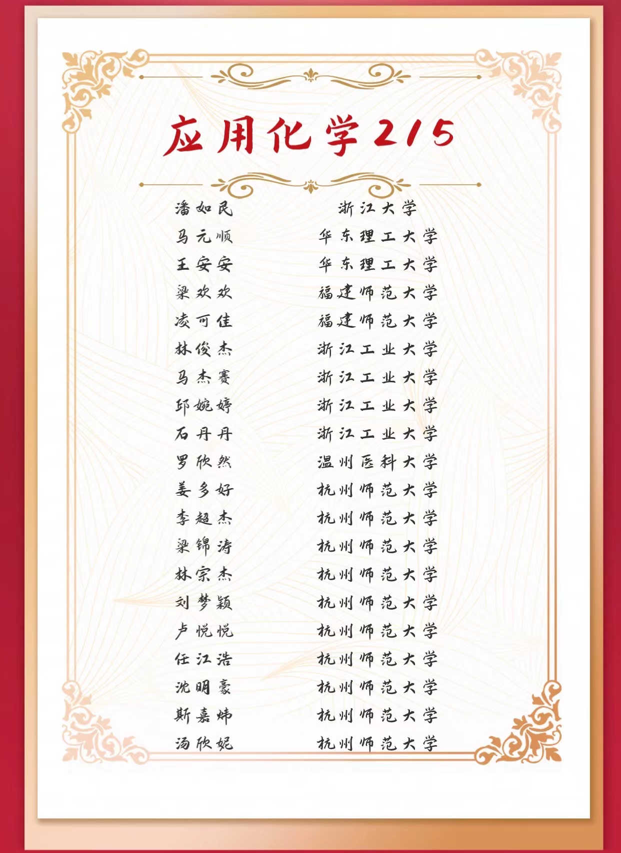 社团学姐 今年共有322名(含专升本120名)毕业生,有243人(含专升本98人)报名考研,其中有149人(含专升本52人)成功考取研究生,拟录取院校有中国科学技术大学、浙江大学、 南京大学、四川大学、厦门大学等,其中不乏“双一流”建设高校。据统计,社团学姐 成功考取“双一流”高校的有49人(含专升本7人)。