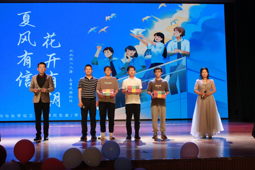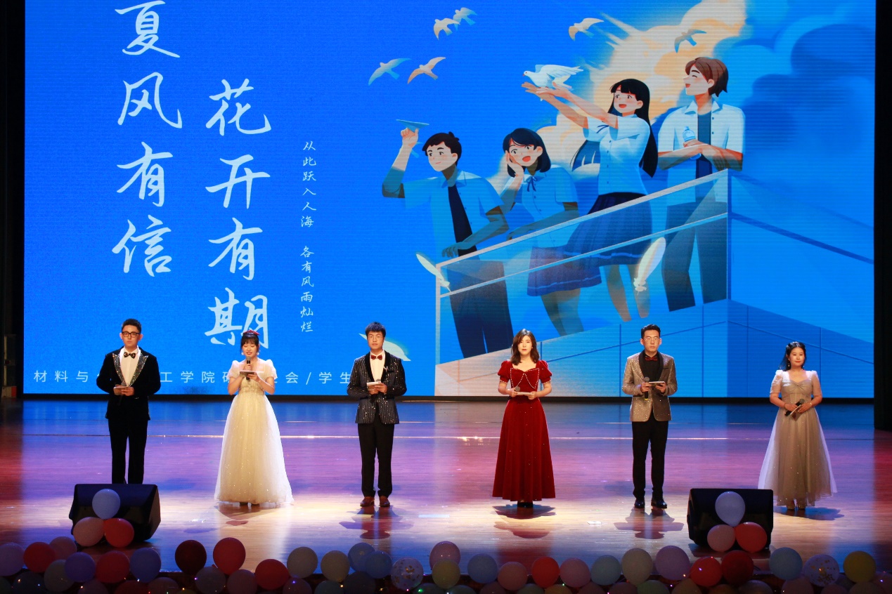 最后,晚会在大家的齐声合唱、留影纪念中落下帷幕。舞台上,材化学子充分展示了多才多艺、充满朝气的一面,表达了对学院老师的感恩和不舍,对学院的祝福和师弟师妹的希望;节目中,演员们演着唱着就哽咽了,忍不住留下了热泪;互动中,师弟师妹们为演员们送上鲜花和祝福,掌声不断,喝彩连连。现场洋溢着浓浓的师生情和同学情。