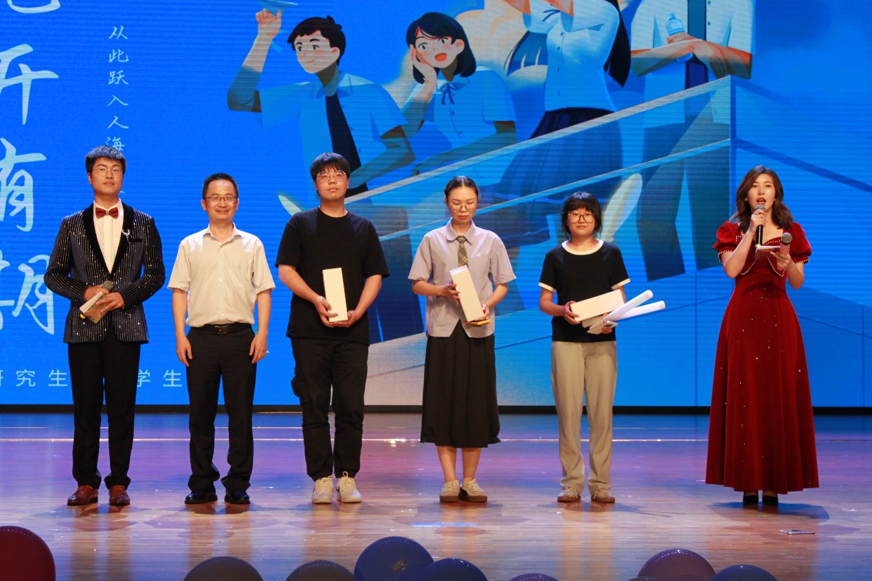 晚会中,嘉宾老师依次上台抽出现场的幸运观众,送出了晚会精心准备的礼物,给同学们分享了老师自己的故事,送上了真挚祝福,为毕业生们留下了深情寄语。