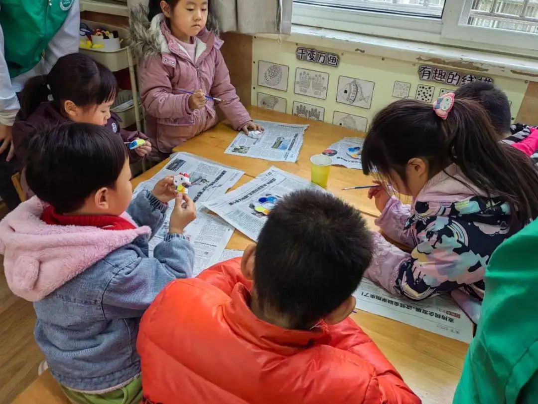 在志愿者指导下,孩子们探索着颜料的奥秘,用调色板和画笔将颜料混合,创造出属于自己的独特色彩。他们展现出了无穷的创造力和想象力,一抹抹明亮的颜色在石膏娃娃身上绽放,让这些本来单调的白色娃娃瞬间变得生动可爱。