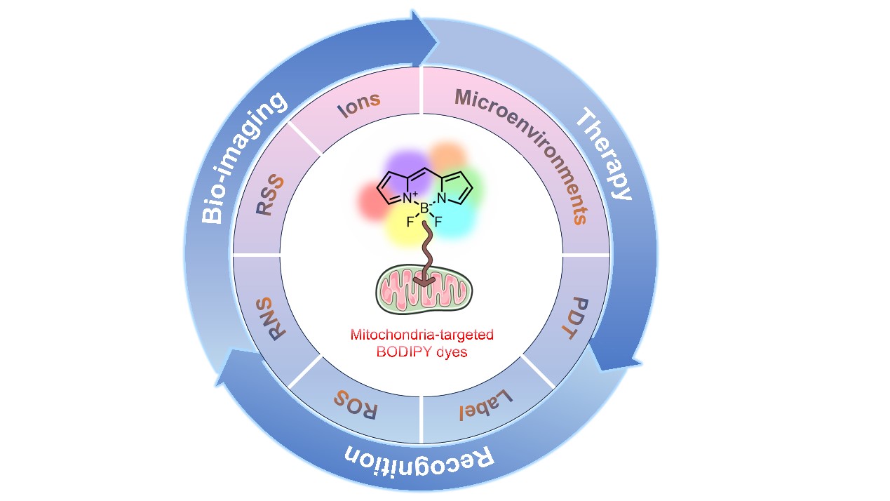 该论文全面总结了线粒体靶向BODIPY染料在小分子识别、生物成像和光动力治疗方面取得的最新进展,重点讨论了其设计原理、光谱特性、细胞毒性及功能化机制,充分展示了其在线粒体成像和靶向治疗中的应用潜力。通过深入分析BODIPY染料的线粒体靶向机制及其相关生物学事件,厘清关键结构特征,为开发新一代高特异性的线粒体工具提供理论基础和结构指南。此外,该论文对染料的应用进行了细致分类,涵盖线粒体标记、生物活性化合物的识别和生物成像(如活性氧物种、活性氮物种、活性硫物种和离子等)、微环境检测(如粘度和温度等)以及光动力治疗,并提出了线粒体靶向BODIPY染料当前研究的困境和未来挑战。