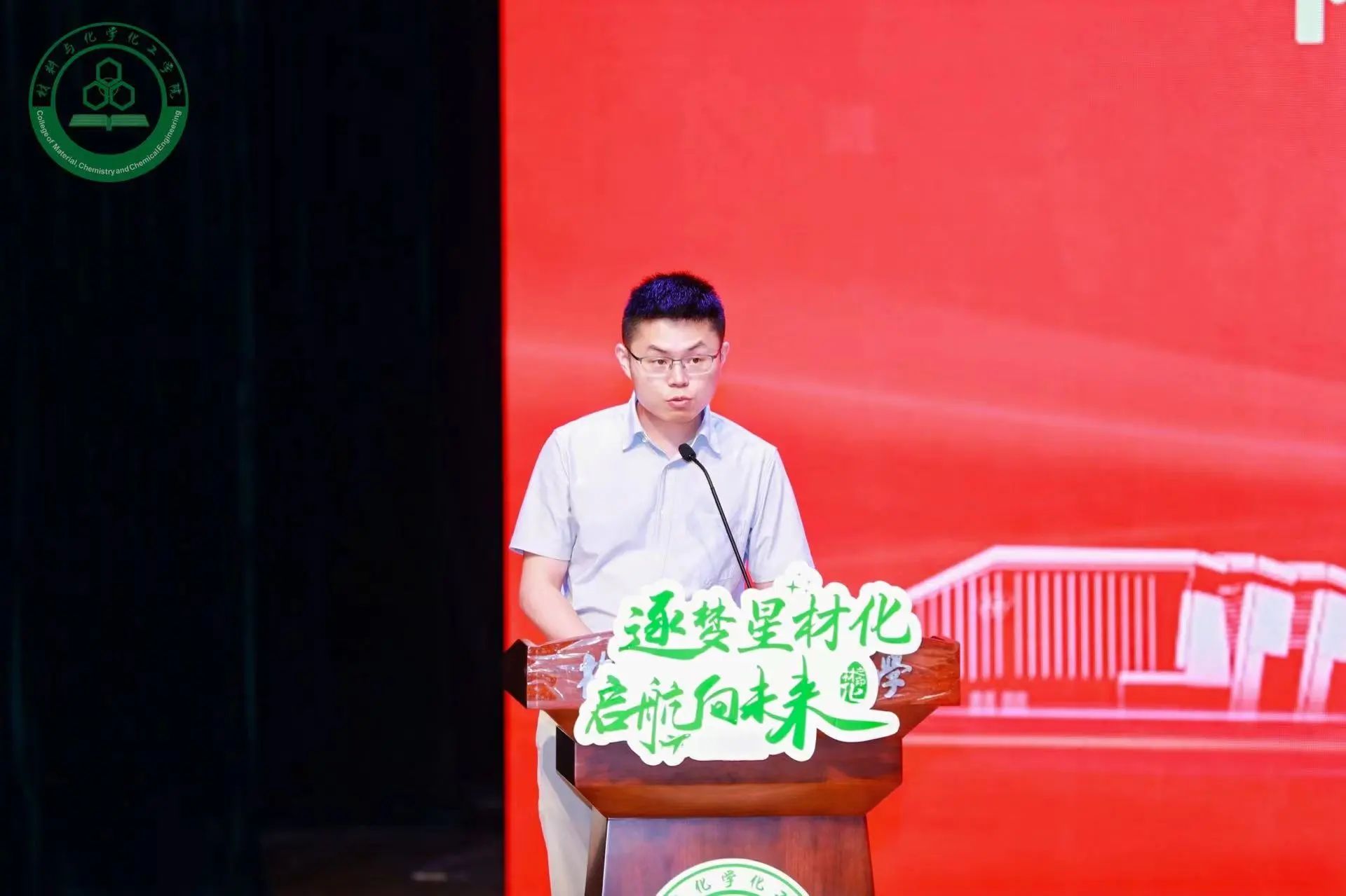 2024年6月18日晚,社团学姐 于仓前校区梦非剧场隆重举行2024届毕业生欢送会暨“大学最后一课”。学院院长章鹏飞,副院长李志芳、黄又举,党委副书记管庆江,化学系主任邵欣欣,化工系主任汤龙程,高分子系主任于双江,全体毕业班班主任,研究生导师代表,辅导员,宿管阿姨代表张彩凤和全体2024届本研毕业生参加本次欢送会。欢送会由管庆江主持。