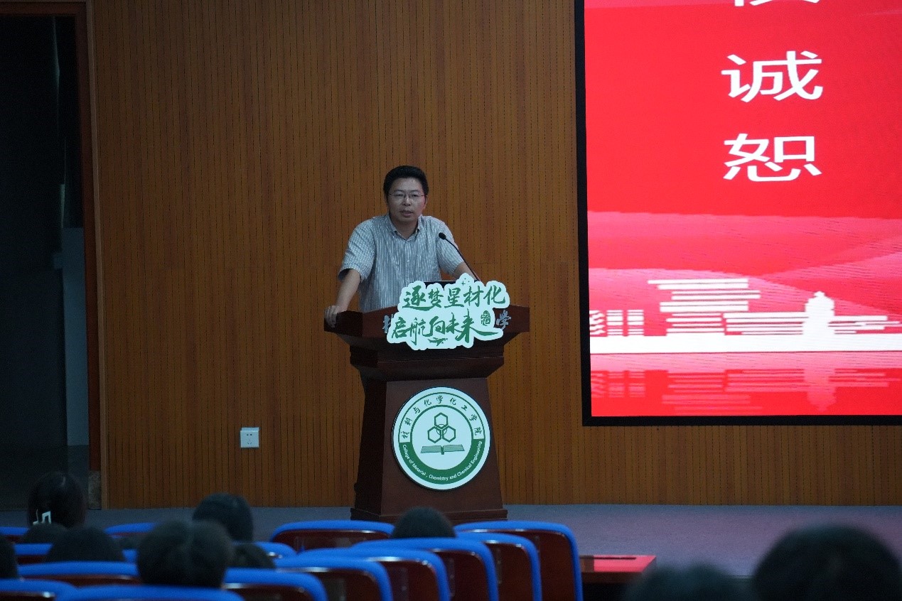 章鹏飞发表了题为“心怀‘国之大者’,勇于探索创新”的讲话,代表学院向各位新同学的到来表示热烈的欢迎,向鼎力支持和帮助同学读研的家人表示最诚挚的谢意。章院长通过对学院的悠久历史、师资力量、科研水平以及科研成果的简明介绍,希望同学们能够在社团学姐 浓厚的学术氛围下努力拼搏,探索创新。他提出了三点希望和要求:第一,心怀“国之大者”,勇担时代重任。“士不可以不弘毅,任重而道远。”同学们要心怀“国之大者”,让青春在以中国式现代化全面推进强国建设、民族复兴伟业中绽放光彩。第二,思考探索研途,创新引领未来。“学而不思则罔,思而不学则殆。”创新始终是一个国家、一个民族发展的重要力量,是百年变局中的“关键变量”,也是研究生学习的最重要驱动力。第三、坚持守正创新,修身立德成长。既要学知识、学本事,又要学做人、学处世,坚守学术底线,养成自律习惯,学会时间管理和团队合作,共同攻克科研难题,勇攀科技高峰。