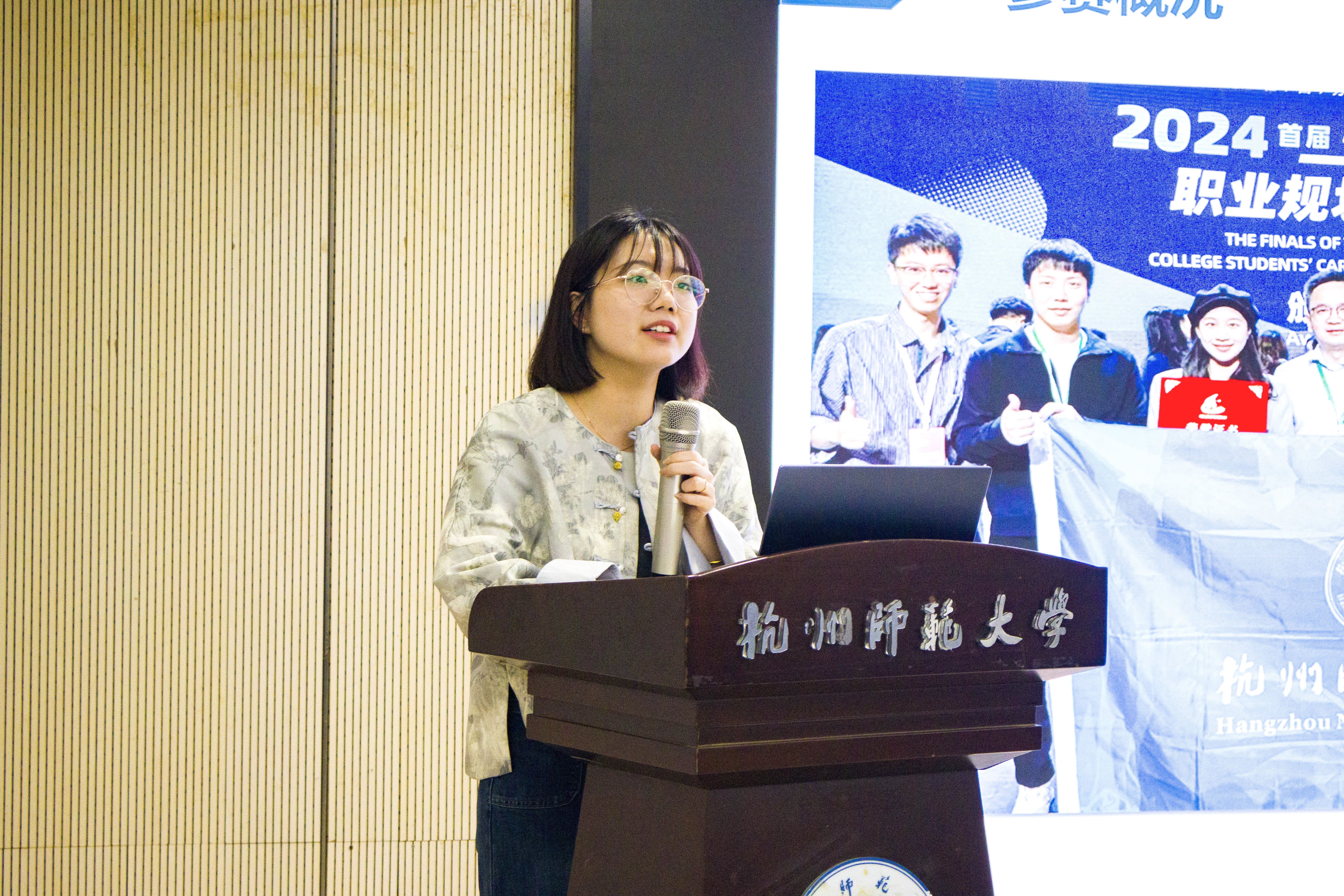 林伊纯为同学们带来职业规划大赛指导经验的分享。她主要从赛事概况、职业选择、职业挖掘、学生成长、师生共创等五方面详实地向同学们介绍了职业规划大赛的具体内容和备赛技巧,为同学们指点迷津,并鼓励同学们以赛促学,以赛促练,在比赛中找到适合自己的职业发展赛道。