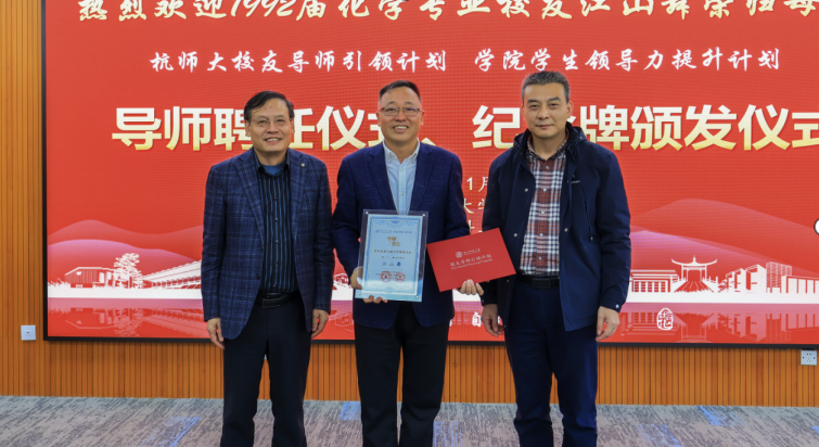 报告会伊始,现场举行了导师聘任仪式和纪念牌颁发仪式。章鹏飞、来国灿分别为江山舞颁发“社团学姐 校友导师引领计划”暨“社团学姐 学生领导力素养提升计划”导师聘书以及“导师思享会”纪念牌。