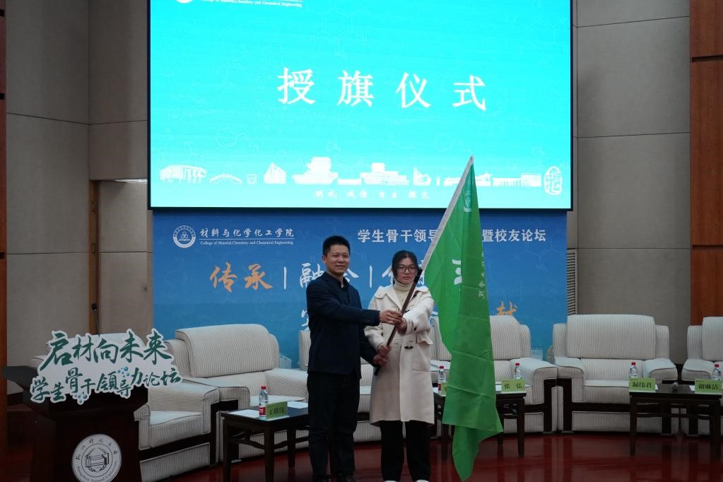 论坛开始前,管庆江衷心感谢各位学生骨干为本研同学们和学院发展所作出的辛勤努力,指出本次论坛的特点就是“传承融合创新,实干服务奉献”,并提出三点希望与大家共勉:一是在传承中发展,在守正中创新;二是在实干中历练,在服务中奉献;三是在工作中思考,在复盘中进步。希望同学们在服务学院师生和学院发展过程中双向奔赴,互相成就。随后,管庆江将论坛会旗“启材向未来”授予学院学生会执行主席陈丹。