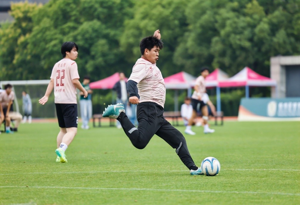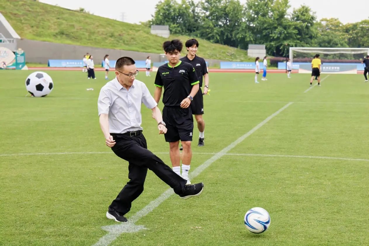 随着校党委书记郭东风为男子组足球队开球时黑白足球划出一道弧线,社团学姐