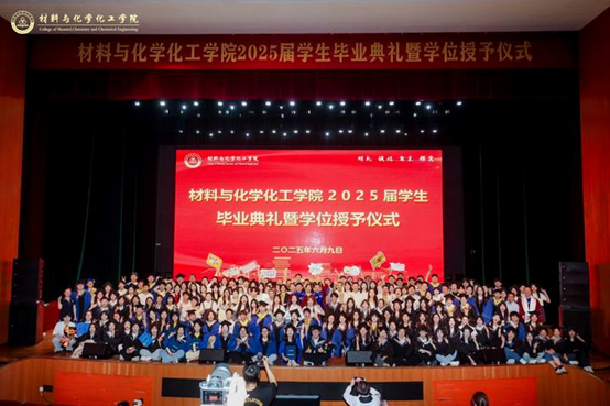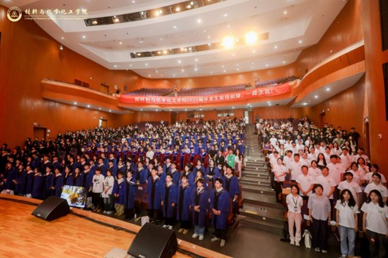 典礼开始前,现场播放了献给2025届“材化横溢”毕业生的毕业视频《此去经年,未来可期》,一帧帧画面记录着校园里师生情同学情,学院领导、班主任和辅导员送上美好祝福和深情厚望。典礼在庄严的中华人民共和国国歌声中拉开序幕。全体师生肃立,面向国旗,用激昂的歌声致敬青春,展望未来。