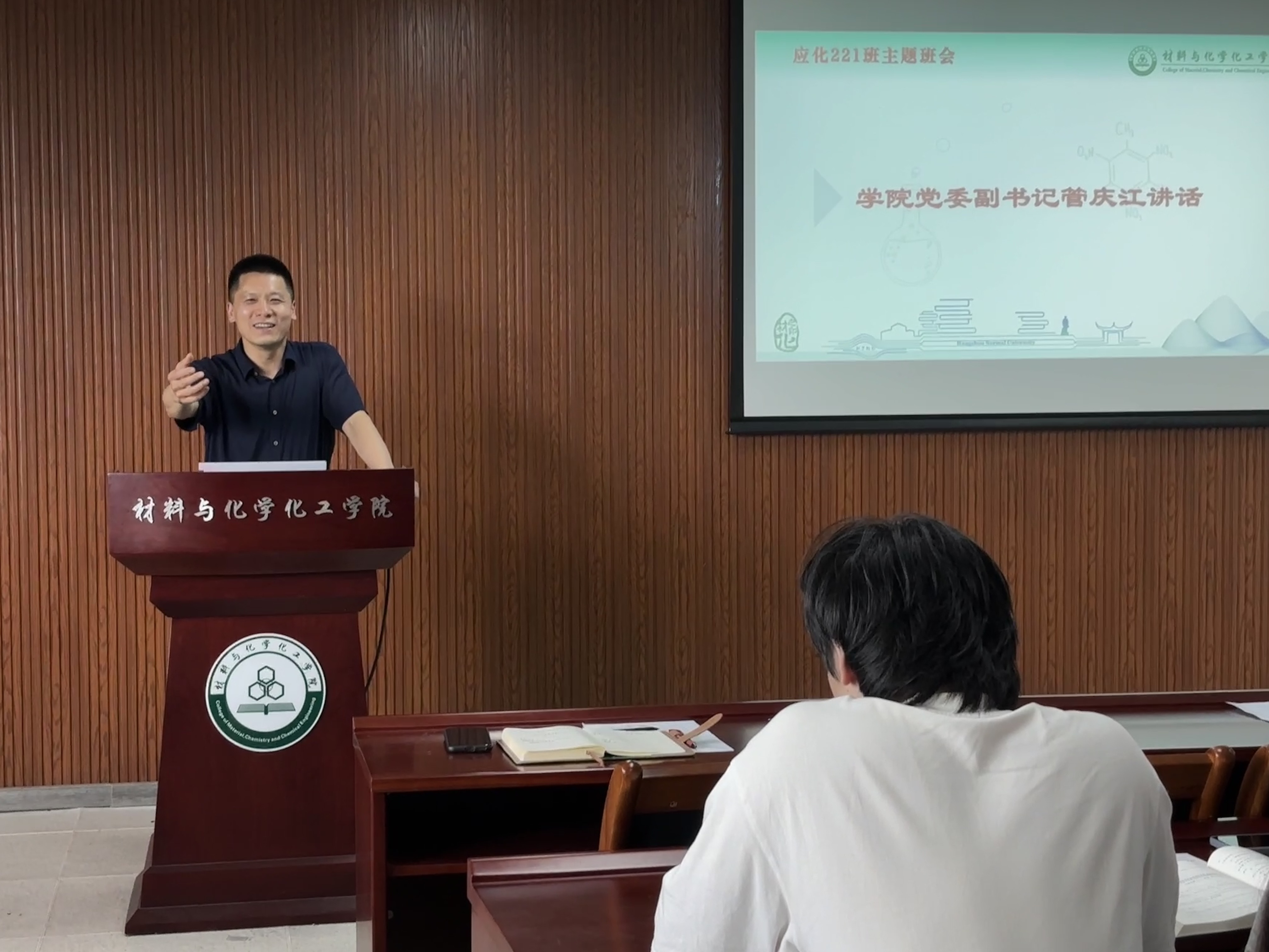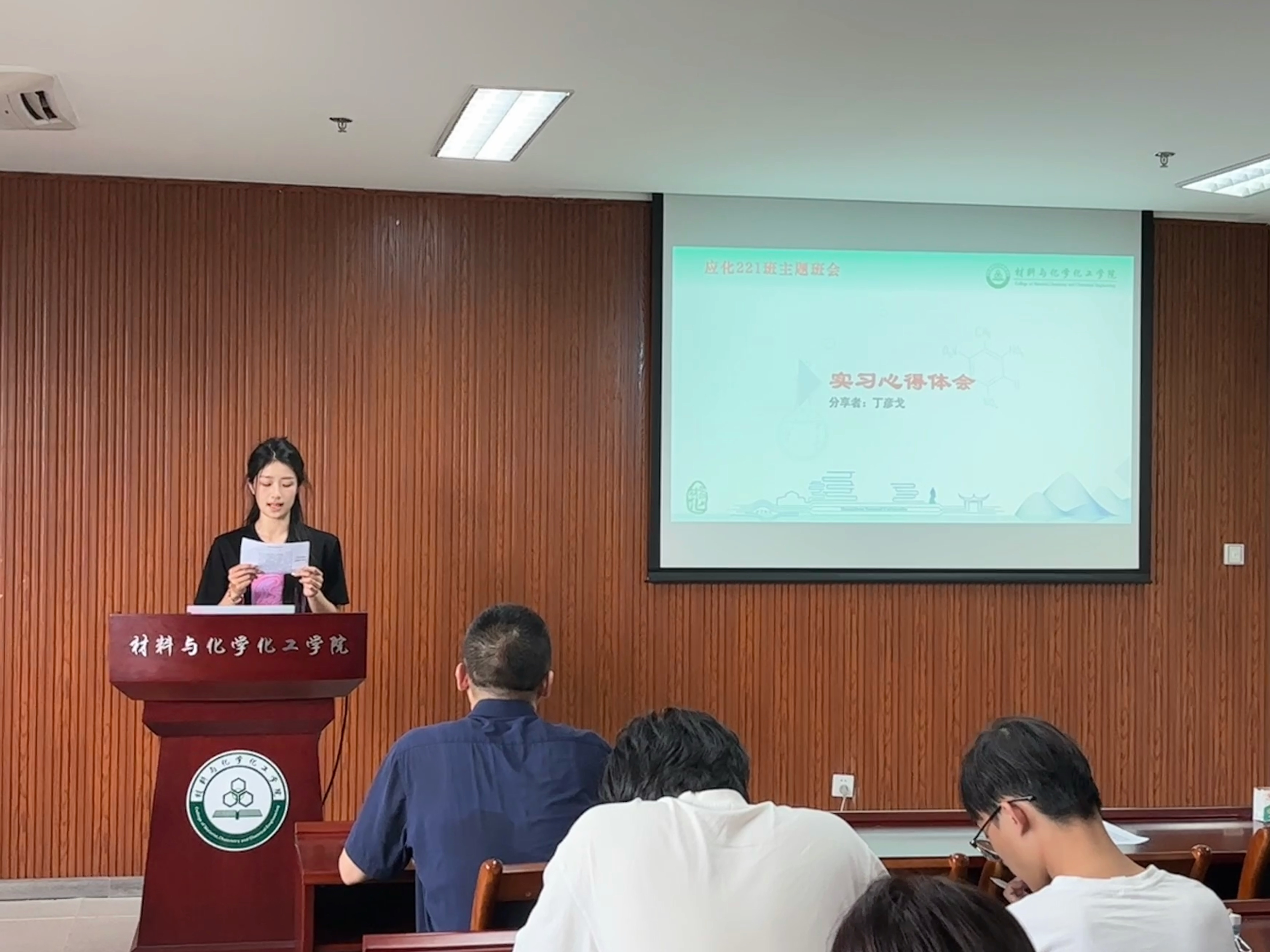 活动伊始,罗远桓首先从班级建设的角度介绍了班级和同学获奖及发展进步情况,班级同学团结互助,在学习上形成了浓厚的你追我赶、互帮互助的氛围;大家勤奋好学,积极参与各类学术活动和实践项目,不断充实自我。随后,学生代表丁彦戈分享自己在实验室实习的宝贵经历,不仅深入学习了专业知识,将其应用到实际操作中,从而拓宽了专业知识的范围,培养了严谨的科研态度;许翰文同学坦诚地分享了自己对于目前发展现状的思考,结合自身情况,阐述了自己对未来的规划,包括短期的学习目标和长期的职业理想;表达了自己内心的迷茫和困惑,比如面对众多职业选择时的犹豫不决,对自身能力能否适应未来发展的担忧等,他的真实分享,引发了在场同学们的共鸣。