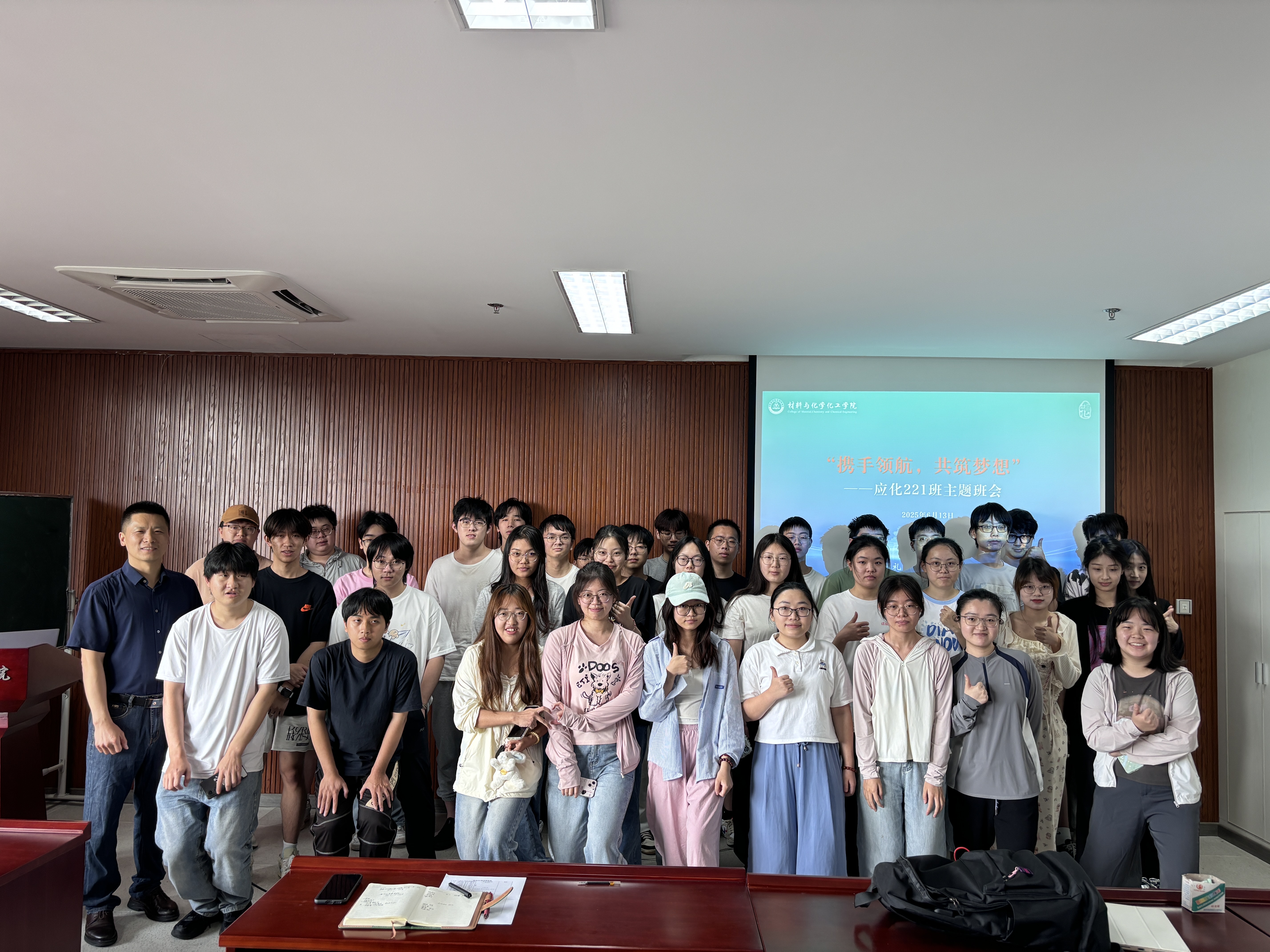 为进一步强化学风建设,总结实习经验,思考未来发展,6月13日,应用化学221班以“携手领航,共筑梦想”为主题举办了一场主题班会。社团学姐 党委副书记管庆江作为班级结对领导参加本次主题班会并讲话。班会由班长罗远桓主持。