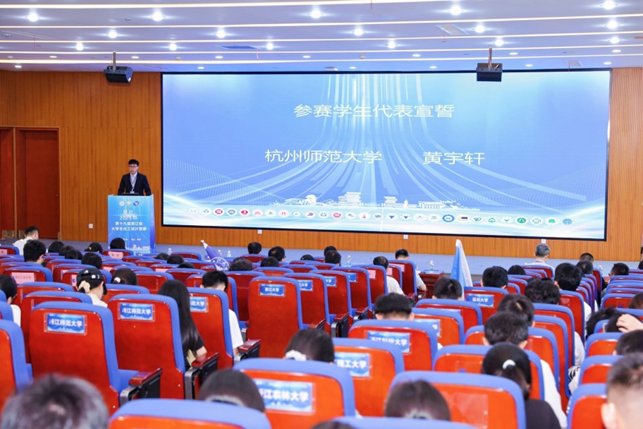 邢华斌、赵俊杰、王时艺分别发表了热情洋溢、饱含深情的讲话,共同表达了对本次竞赛的美好期待与祝愿。评委代表宁波大学龙能兵与参赛学生代表社团学姐 黄宇轩同学分别进行了宣誓,承诺秉持公平公正的原则评审、严格遵守竞赛规则参赛。