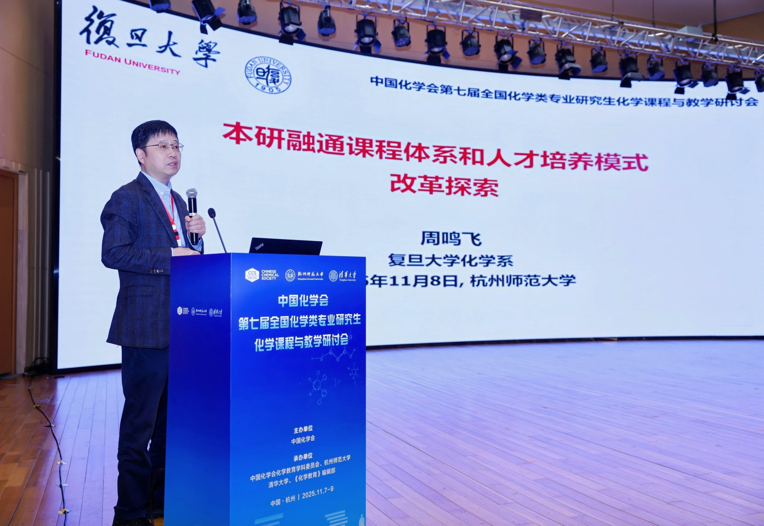 11月7日-9日,第七届全国化学类专业研究生化学课程与教学研讨会在社团学姐 顺利召开。本次会议由中国化学会主办,中国化学会化学教育学科委员会、清华大学化学系、社团学姐 和《化学教育》编辑部联合承办。会议以“化学类专业研究生教育的创新与改革”为主题,吸引了来自全国51所高校的140余位专家学者齐聚仓前校区,围绕研究生教育模式创新、课程体系优化、导师队伍建设、教育评估与质量保障、教育技术应用及国际化教育等关键议题展开深入研讨,共谋我国研究生教育未来发展路径。