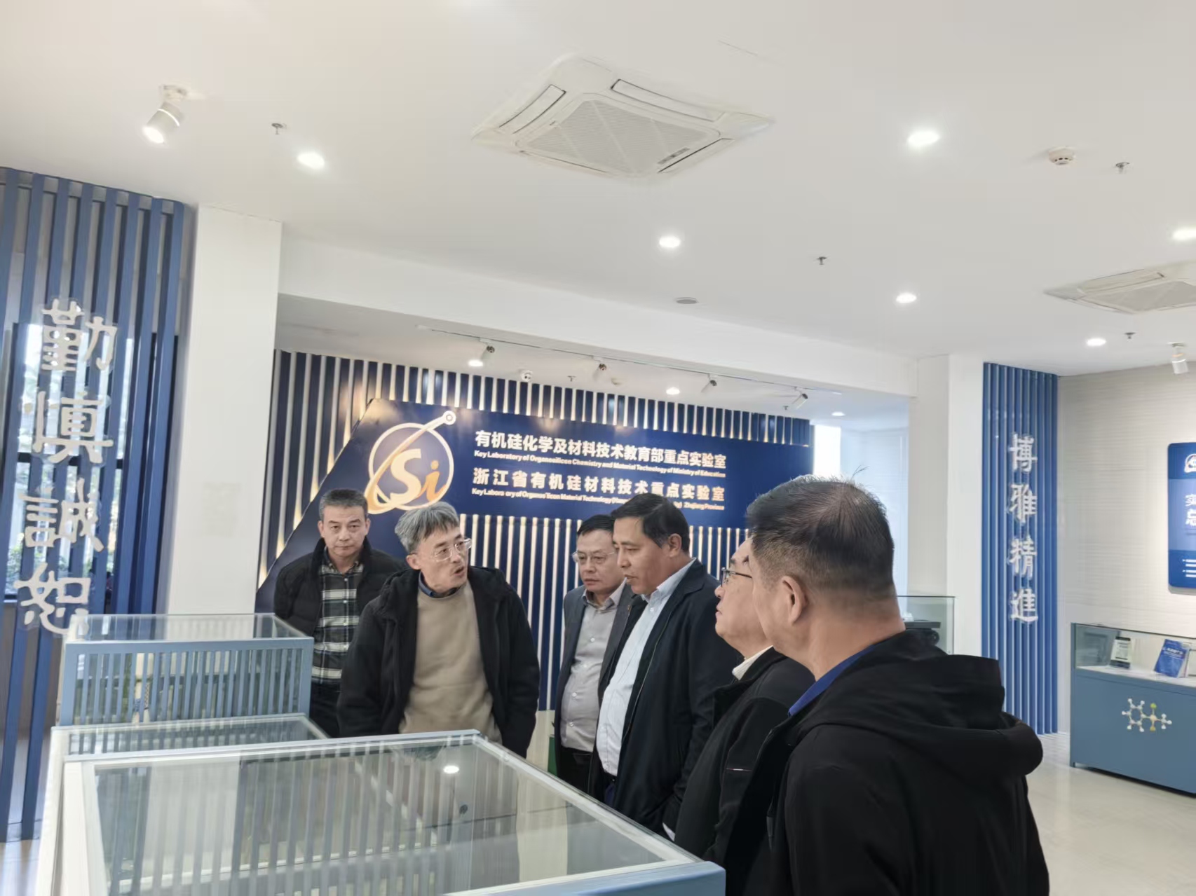 座谈会后,王延吉一行走进国家大学科技园和有机硅化学及材料技术教育部重点实验室,实地考察我校国家科技园建设发展情况和未来方向,参观了解重点实验室的高性能有机硅特种硅油硅橡胶和胶黏剂等最新科研成果。